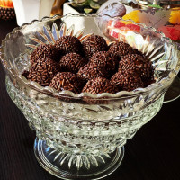 Classic brigadeiros, a traditional Brazilian chocolate truffle made with cocoa powder and condensed milk rolled in chocolate sprinkles.