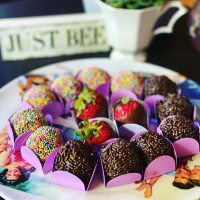 Classic brigadeiros, a traditional Brazilian chocolate truffle made with cocoa powder and condensed milk rolled in chocolate sprinkles. Plus, filled with delicious strawberries.